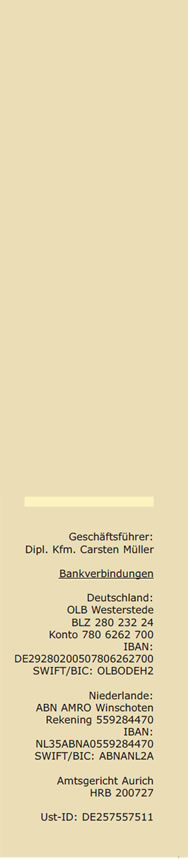 *Die Versandkosten beinhalten einen Standardversand frei Deutschland ohne Inseln. Inselzuschläge und Versandkosten Ausland auf Anfrage.